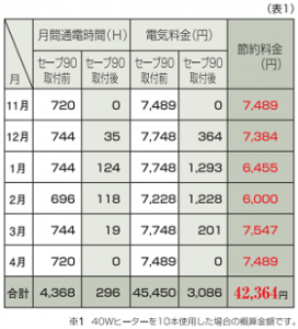 本格的に寒さが厳しくなる12月~2月より11,3,4月の方が節電効率が高くなります。冬支度は12月からが本番ですが、セーブ90+3の取り付けは効果の高い11月からがおススメです。